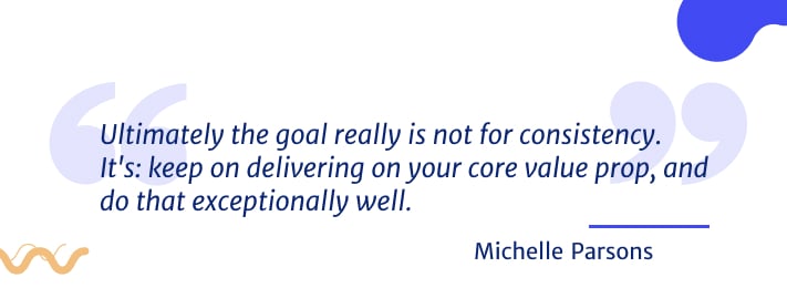 The benefit though, that I’ve actually seen and experienced firsthand is I’m able to just ask other people in other parts of our brand, How are you solving this problem? How are you thinking about X, Y, and Z? And able to share insights. And of course we have different audiences and different end goals. And so every insight might not be as relevant in that same context, but it’s another data point that I can use, that my team can use to make more informed decisions. That’s one been one of the benefits. But ultimately the goal really is not for consistency. It’s: keep on delivering on your core value prop, and do that exceptionally well.