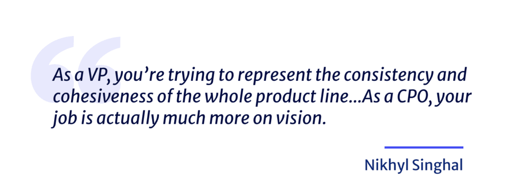 As a CPO, your job is actually much more on vision. So the strategy is less around cohesiveness of the product line, more around what’s happening tomorrow. And a lot of times it’s the storytelling and the narrative that needs to be a plus here.